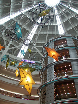 Unfortunately the viewing platform was closed as it was a public holiday. So they headed for the underwater world at KLCC.And they caught the piranha show.